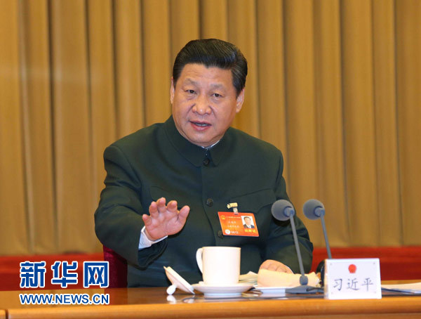 311日,中共中央總書記、國家主席、中央軍委主席習(xí)近平出席十二屆全國人大二次會議解放軍代表團全體會議并發(fā)表重要講話。新華社記者李剛攝